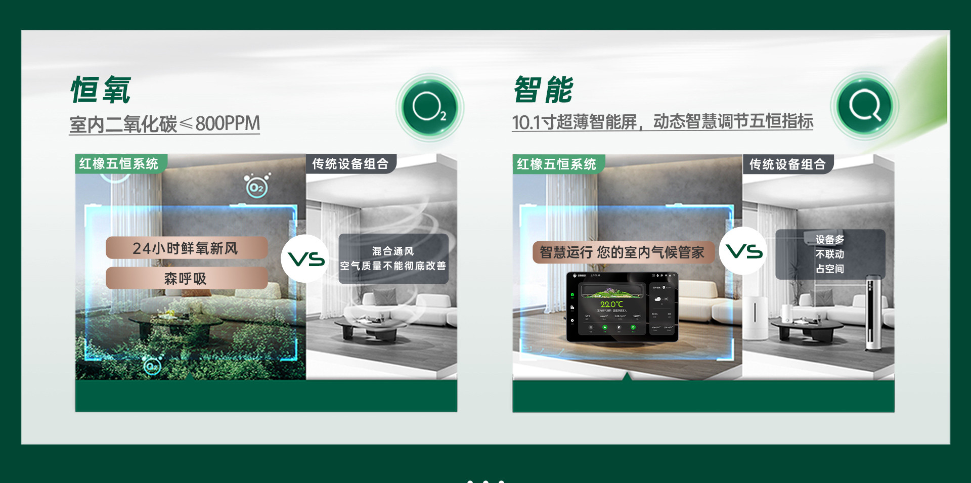 精英版紅橡五恒系統(tǒng)是一套對室內(nèi)空氣的溫度、濕度、潔凈度、清新度(含氧量)和寧靜度(環(huán)境噪聲)進(jìn)行聯(lián)合調(diào)節(jié)的高科技系統(tǒng),系統(tǒng)通過對與人體健康息息相關(guān)的“五度”的調(diào)節(jié),使室內(nèi)環(huán)境始終處于溫度恒定(恒溫)、濕度恒定(恒濕)、含氧量恒定(恒氧)、潔凈度恒定(恒潔)、寧靜度恒定(恒靜)的狀態(tài),室內(nèi)恒溫恒濕、空氣清新、室內(nèi)潔凈、無聲無風(fēng)、健康舒適、節(jié)能環(huán)保。